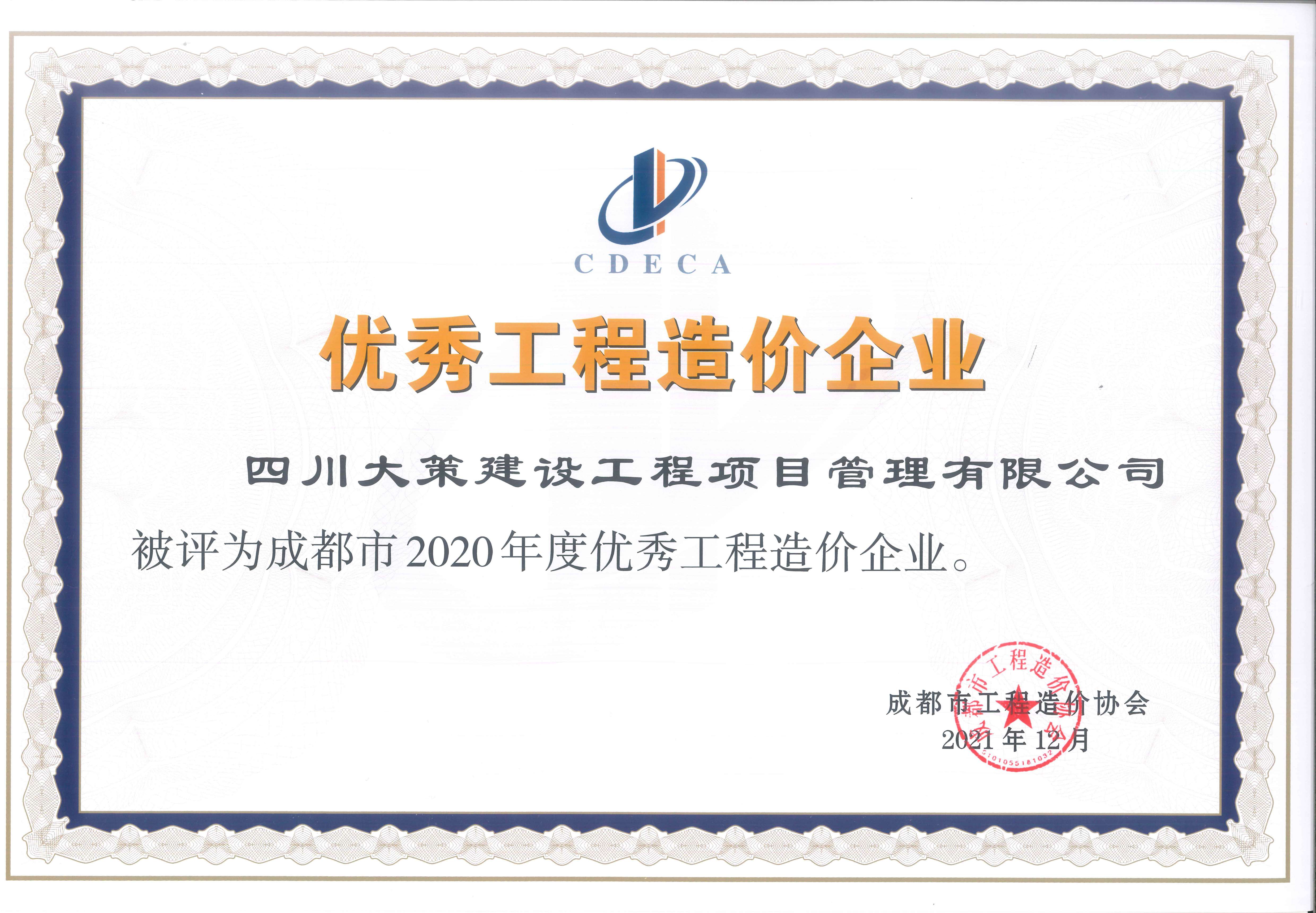 • 2020年度優(yōu)秀工程造價(jià)咨詢企業(yè)